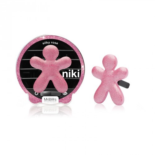 Pomocou univerzálneho funkčného klipu pripevníte vôňu na vetracie otvory (vývod klimatizácie) každého auta, vertikálne alebo horizontálne. Vône do auta potom s pomocou pusteného vzduchu rozvádzajú stálu a dlhotrvajúcu vôňu. Môžete použiť EVA náplň napustenú aromatickým olejom podľa výberu, ktorú môžete ľahko nahradiť novou. Balenie vrátane iniciálnej náplne, ktorú možno kedykoľvek vymeniť za jednu z 15 alternatív. Prevoňajte vaše auto vôňou Silky Rose (hodvábna ruža)!Vôňa do ventilácie Mr&Mrs Fragrance z rady NIKY
