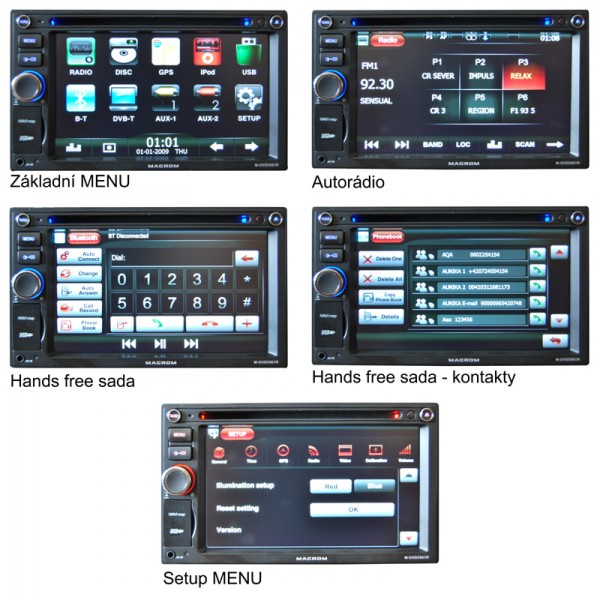 - AV jednotku 2DIN MACROM M-DVD5561 s 6,2 "dotykovým monitorom, DVD mechanikou a vstavanou navigáciou
