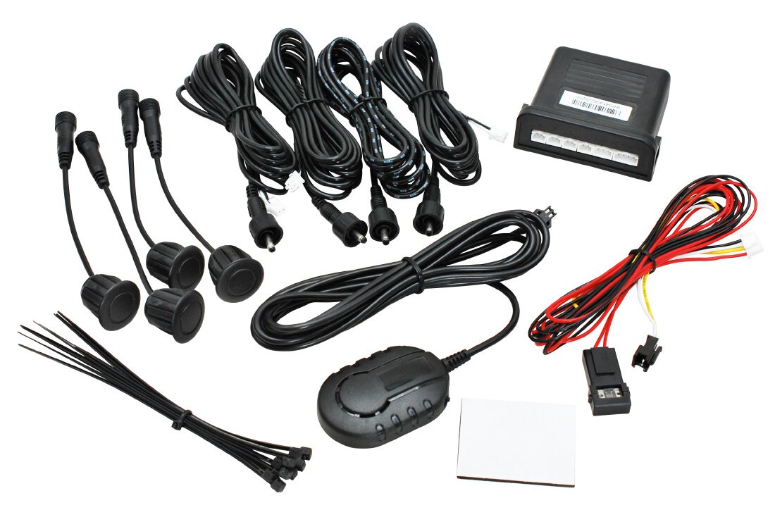 Sada zadných alebo predných parkovacích senzorov so 4 snímačmi a bzučiakom.- Ultrazvukové senzory s plochou charakteristikou vyžarovania.