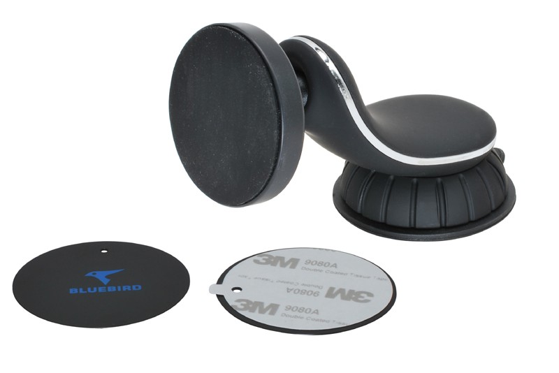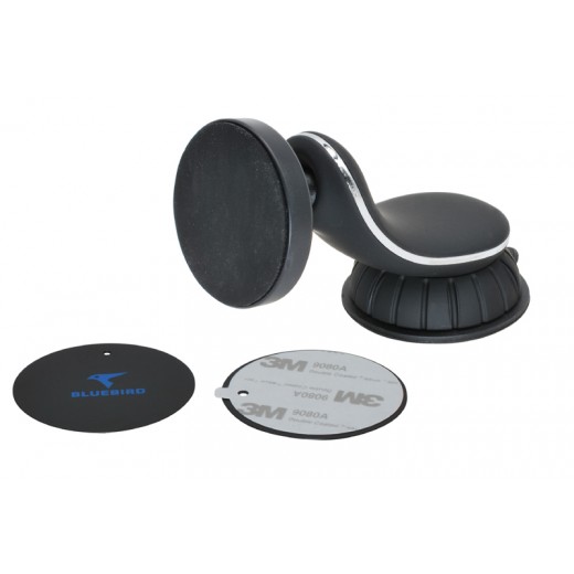 Magnetický držiak pre mobilné zariadenia - smartfóny, tablety, prenosné navigácie pre montáž do áut, alebo iné vhodné umiestnenie. Silný magnet zaisťuje pevné uchytenie zariadenia k držiaku. Aj pri jazde v nerovnom teréne, zariadenie upevnené na magnetickom držiaku Bluebird, nespadne. Obsahuje dve kovové doštičky 3M pre upevnenie mobilných zariadení. Kovovú doštičku je nutné nalepiť na zadnú stranu mobilného telefónu alebo na jeho puzdro. Držiak je univerzálny, kompatibilný s väčšinou smartphonov na trhu. Magnetický držiak je bezpečný pre zariadenia a nespôsobuje žiadne rušenie pri používaní zariadenia.