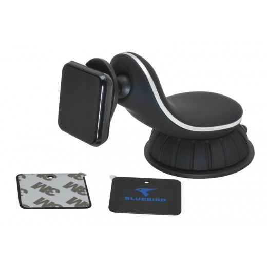 Magnetický držiak pre mobilné zariadenia: inteligentné telefóny, tablety, prenosné navigácie pre montáž do áut, alebo iné vhodné umiestnenie. Silný magnet zaisťuje pevné uchytenie zariadenia k držiaku. Aj pri jazde v nerovnom teréne, zariadenie upevnené na magnetickom držiaku Bluebird, nespadne. Obsahuje dve kovové doštičky 3M pre upevnenie mobilných zariadení. Kovovú doštičku je nutné nalepiť na zadnú stranu mobilného telefónu, alebo na jeho puzdro. Držiak je univerzálny, kompatibilný s väčšinou smartphonov na trhu. Magnetický držiak je bezpečný pre zariadenie, nespôsobuje žiadne rušenie pri používaní zariadenia.