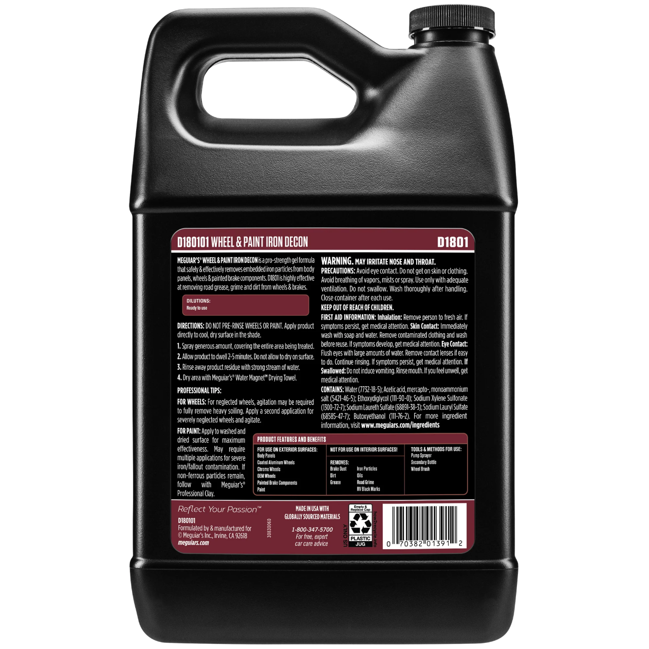 Najúčinnejší čistič na kolesá, ktorý je pH neutrálny, sfarbuje sa do červena, a zároveň funguje ako chemická dekontaminácia laku? Áno! Presne to spĺňa Meguiar's Professional Wheel & Paint Iron Decon! Extra účinný, extra šetrný, extra nenahraditeľný! Jedinečná profesionálna technológia efektívne, a pritom šetrne odstráni prichytené železité nečistoty z karosérie, kolies i lakovaných brzdových komponentov. Zároveň je veľmi účinná pri odstraňovaní cestných nečistôt, mastnoty a špiny z kolies a bŕzd. Špeciálna priľnavá konzistencia prípravku zaistí, že produkt nesteká zo zvislých plôch kolies ako ostatné podobné čističe, a vďaka tomu uvoľňuje brzdový prach i cestné nečistoty z povrchu kolies po celú dobu pôsobenia. Kompletne prepracované zloženie tohto prípravku zvýšilo čistiace schopnosti, avšak zachovalo jeho neutrálne pH i maximálnu šetrnosť pre všetky typy kolies, rovnako ako pre pneumatiky aj brzdové komponenty. Meguiar's Professional Wheel & Paint Iron Decon obsahuje prímesi, ktoré pri kontakte s nečistotami na báze železa (Fe) sfarbia prípravok do červena. Tento efekt nie je dôkazom čistiaceho účinku produktu, ale iba indikátorom, či nečistoty na povrchu obsahujú železo. Pokiaľ sú povrchy silne znečistené, avšak bez obsahu železitých nečistôt, prípravok sa nesfarbí, ale stále bude rovnako výborne čistiť povrch od všetkých zvyškov nečistôt.