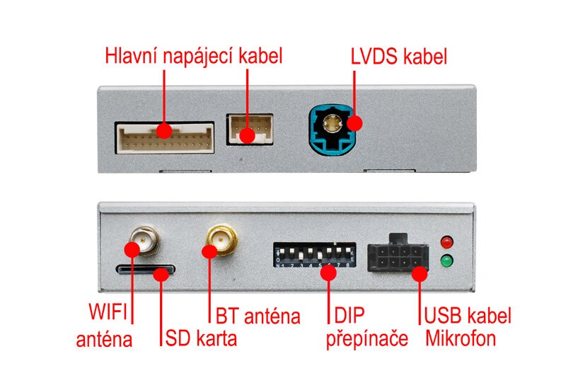 - Modul umožňuje Android Auto a zrkadlenie obrazovky po pripojení káblom