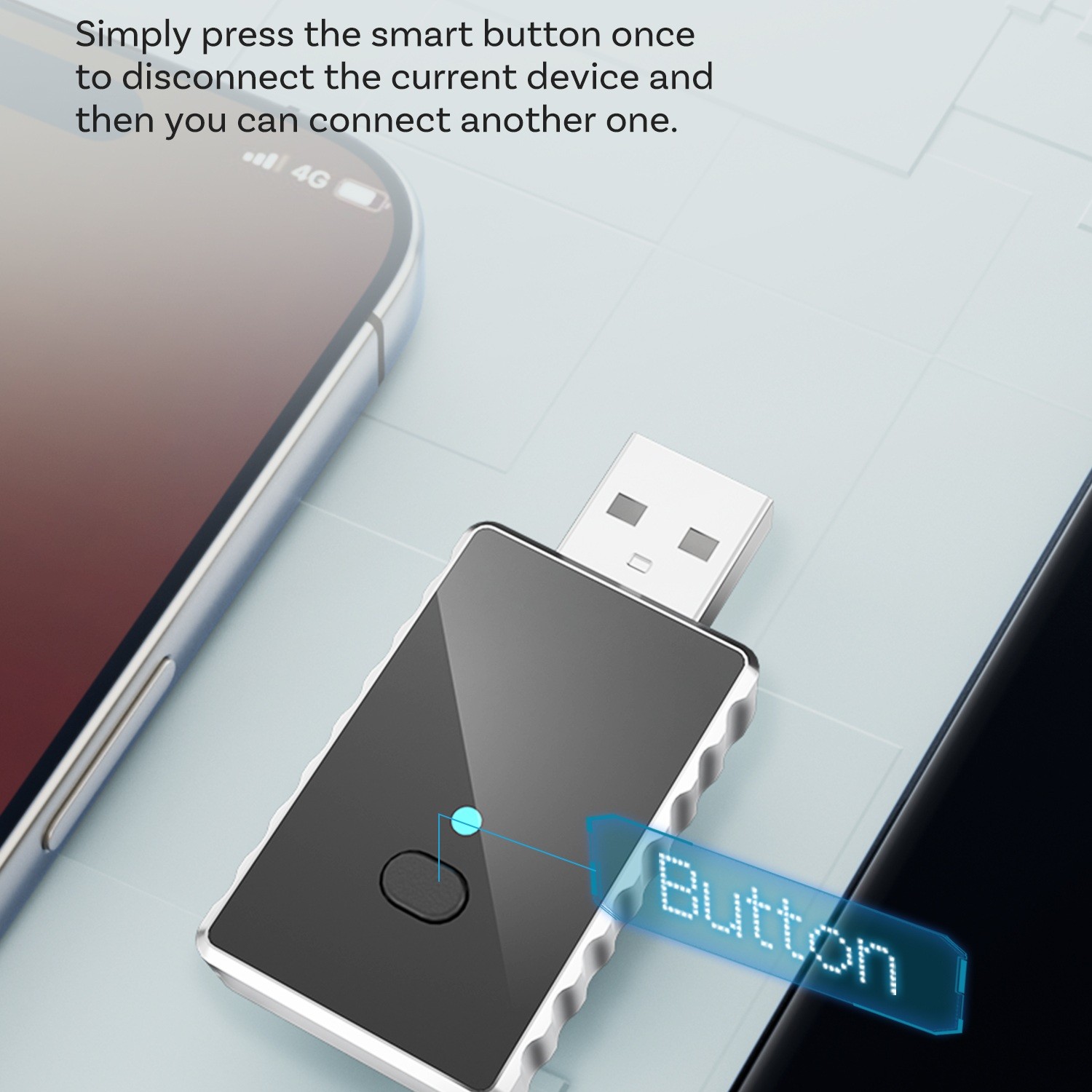 - Krátkym stlačením odpojíte aktuálne pripojenie.