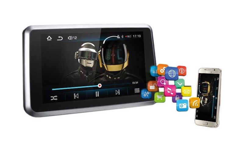 LCD monitor 7 "s vstavanou FULL HD DVR kamerou v elegantnom prevedení, určený na upevnenie na palubnú dosku. Monitor je vybavený držiakom pre jednoduché nastavenie pozície podľa palubnej dosky, DVR kamerou, funkcií mirror link a jedným video vstupom (možné pripojiť spätnú kameru alebo ľubovoľný externý zdroj kompozitného video signálu), vstavaná GPS navigácia s možnosťou reálneho zobrazenie, HD multimediálnym prehrávačom (možnosť prehrávania súboru z micro SD karty alebo USB), vstavaná technológia Bluetooth pre telefonovanie + prehrávanie hudby, FM modulátor + AUX výstup pre prenos zvuku do rádia. Mirror link, umožňuje prenos akéhokoľvek audio / video signálu napríklad zobrazenie navigácie ai. z telefónu so systémom Android cez dátový kábel telefónu.