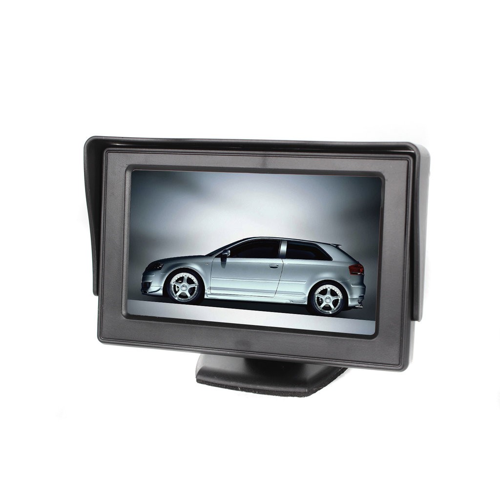 Univerzálny monitor s uhlopriečkou 4,3" určený na zobrazovanie videosignálu parkovacej kamery vozidla. Monitor obsahuje dva video vstupy RCA. Môže byť umiestnený na palubnej doske alebo na strope.
