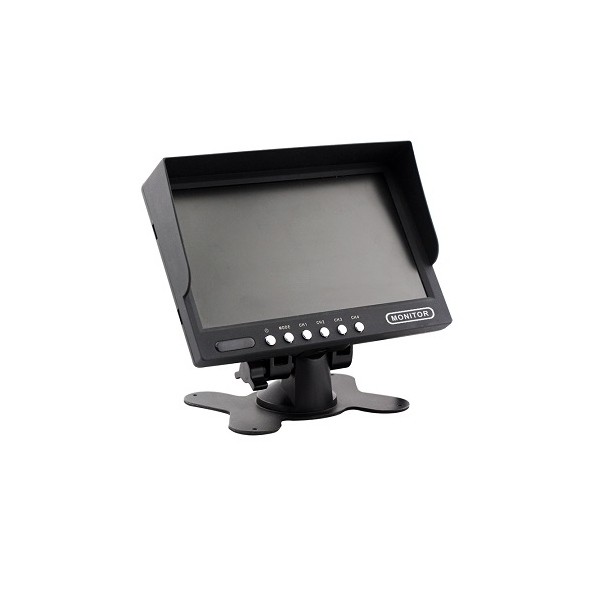 Monitor do vozidla s uhlopriečkou 7", pre pripojenie až štyroch kamier, súčasné zobrazenie záberu viac kamier, skrutkovacie konektory M12 4PIN, rozlíšenie 800x480, pre vozidlá s palubným napätím 12 / 24V, možnosť pripojiť analógové kamery s konektormi M12 alebo RCA cinch (použitím redukcie ), možnosť otočiť obraz o 180°, ideálny pre pripojenie parkovacej kamery, bočných a prednej kamery alebo kamery v ložnom priestore.Technická špecifikácia monitora TFT7A4