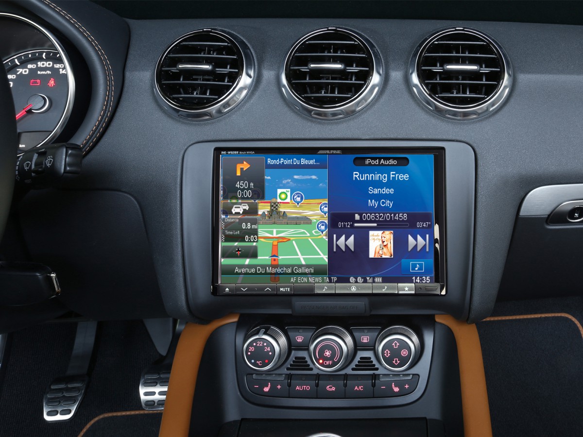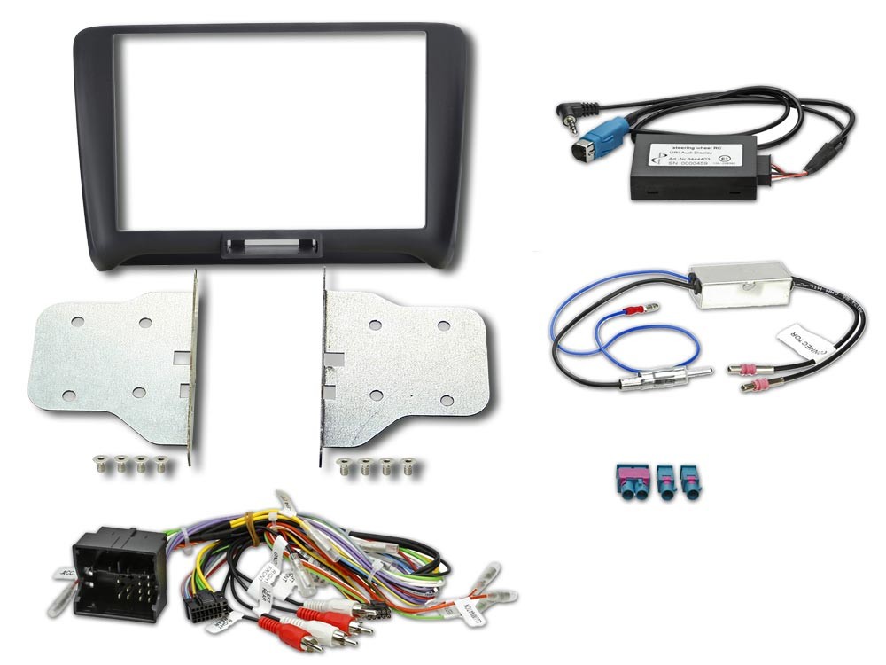 Inštalačná sada pre Alpine 8" navigáciu do Audi TT (8J) - KIT-8TT. Súčasťou sú diely pre mechanickú montáž, rovnako ako diaľkové ovládanie na volante s rozhraním, ktoré tiež dodáva CAN na analógovú konverziu pre ACC, impulzov rýchlosti vozidla a parkovaciu brzdu. Anténny adaptér je zahrnutý. Tiež obsahuje rozhranie, ktoré podporuje zobrazenie informácií na displeji rádia, rovnako ako anténny adaptér.