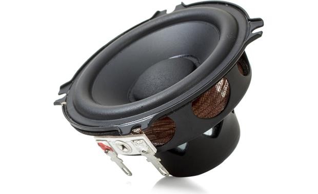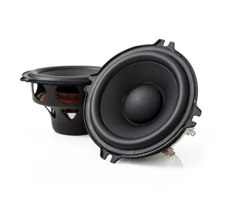 | Typy reproduktorov Koaxiálne reproduktory: Koaxiálne reproduktory sa vyznačujú konštrukciou tzv. Všetko v jednom. Výškový a stredobasový reproduktor sú v jednom koši. Výhodou je jednoduchšia montáž, ale vďaka spojeniu resp. blízkosti pásiem v jednom reproduktore, sa zvyčajne zníži kvalita zvuku. Spravidla uprostred stredobasového reproduktora, je výškový reproduktor, ktorého kmitacia cievka pracuje v druhej vzduchovej medzere spoločného magnatického obvodu. Trojpásmový koaxiálny reproduktor sa skladá zo stredobasového reproduktora, v predu na osobitnom nosníka je stredový reproduktor a samostatný výškový. Komponentné reproduktory: Komponentné reproduktory sa vyznačujú rozdelením na jednotlivé frekvenčné pásma, výškové + stredobasové + popr. basové pásmo. Jednotlivé reproduktory sa dajú umiestniť úplne oddelene, čo má za výsledok lepší zvukový aj akustický prejav. V drvivej väčšine prípadov komponentných reproduktorov je dodávaná aj externá výhybka, ktorá rozdeľuje výškové, stredové / stredobasové a u třípásma aj basové pásmo popr. umožňuje nastavenie decibelovej úrovne u výškového reproduktoru (napr. +2 dB, 0 dB, -2 dB), strmosti (napr. 6dB / okt. 12dB / okt.) či aktívne alebo bi-amp zapojenia. | Stredové |