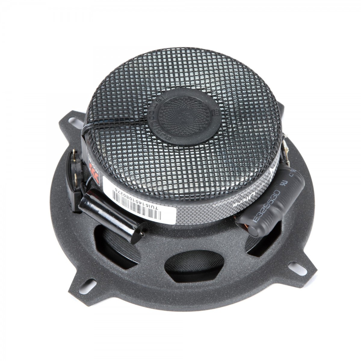 | Typy reproduktorov Koaxiálne reproduktory: Koaxiálne reproduktory sa vyznačujú konštrukciou tzv. Všetko v jednom. Výškový a stredobasový reproduktor sú v jednom koši. Výhodou je jednoduchšia montáž, ale vďaka spojeniu resp. blízkosti pásiem v jednom reproduktore, sa zvyčajne zníži kvalita zvuku. Spravidla uprostred stredobasového reproduktora, je výškový reproduktor, ktorého kmitacia cievka pracuje v druhej vzduchovej medzere spoločného magnatického obvodu. Trojpásmový koaxiálny reproduktor sa skladá zo stredobasového reproduktora, v predu na osobitnom nosníka je stredový reproduktor a samostatný výškový. Komponentné reproduktory: Komponentné reproduktory sa vyznačujú rozdelením na jednotlivé frekvenčné pásma, výškové + stredobasové + popr. basové pásmo. Jednotlivé reproduktory sa dajú umiestniť úplne oddelene, čo má za výsledok lepší zvukový aj akustický prejav. V drvivej väčšine prípadov komponentných reproduktorov je dodávaná aj externá výhybka, ktorá rozdeľuje výškové, stredové / stredobasové a u třípásma aj basové pásmo popr. umožňuje nastavenie decibelovej úrovne u výškového reproduktoru (napr. +2 dB, 0 dB, -2 dB), strmosti (napr. 6dB / okt. 12dB / okt.) či aktívne alebo bi-amp zapojenia. | Koaxiálne 2pásmové |