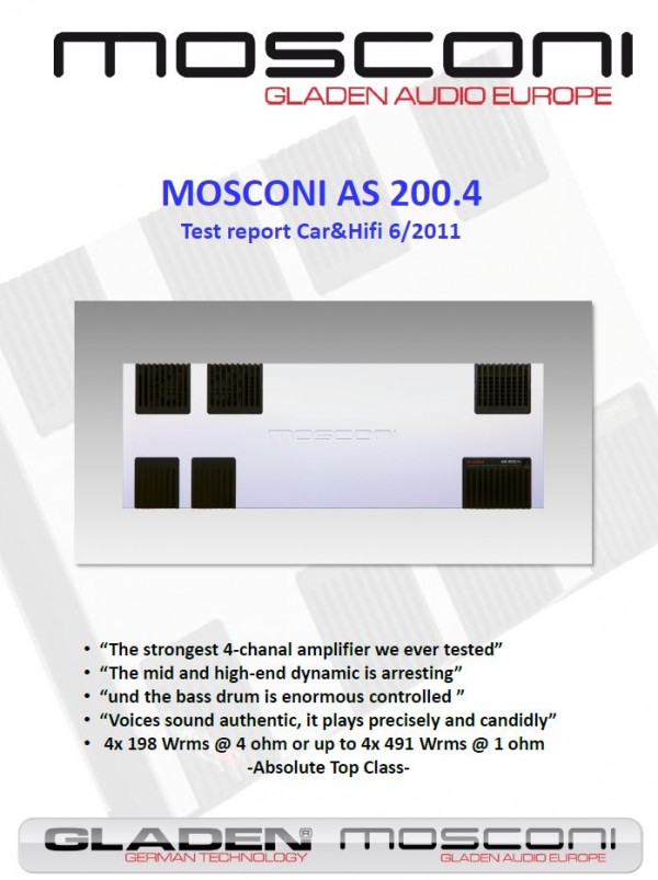 Vďaka záplave pozitívnych reakcií po celom svete na modelový rad Mosconi Gladen AS sa dnes už dá hovoriť o týchto zosilňovačoch ako o legendárnych. Vysoká kvalita zvuku, jedinečný dizajn a skvelý pomer cena/výkon. To všetko sú zosilňovače Mosconi Gladen z radu AS.