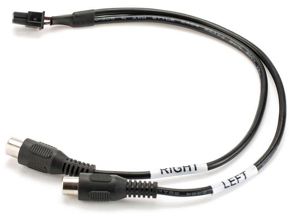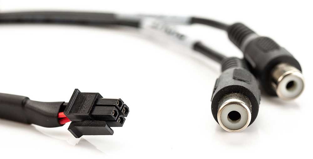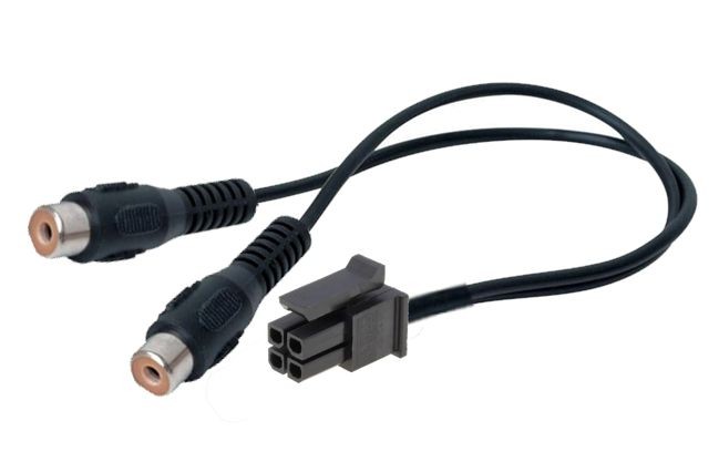 Pripojovací kábel s koncovkou RCA a na druhej strane micro fit konektorom. 2kanálový, určený pre zosilňovače a DSP procesormi Mosconi Gladen.