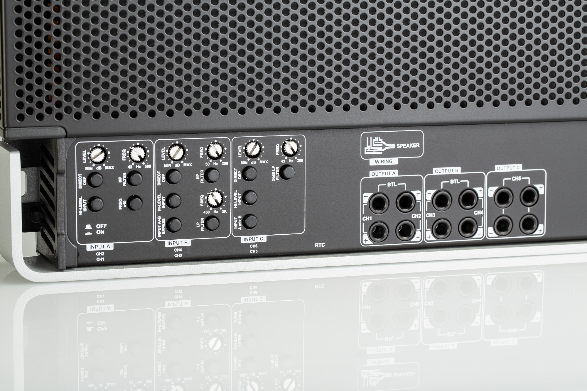 - 5kanálový zosilňovač triedy AB, s mono výstupom triedy D.