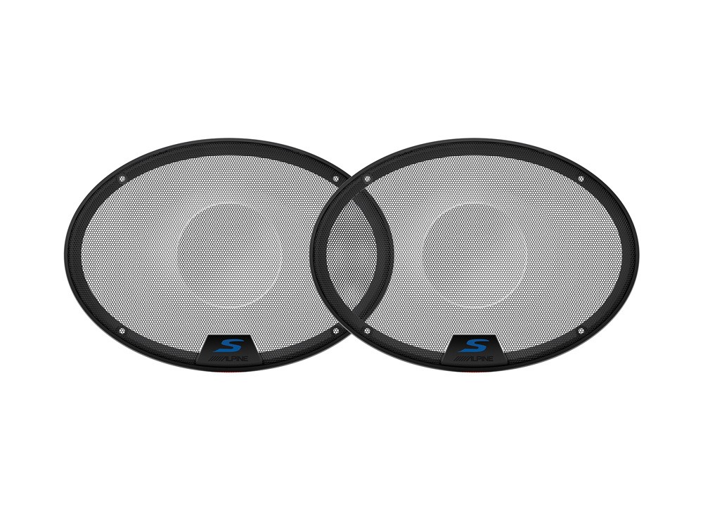 Voliteľná mriežka pre reproduktory radu S 6 x 9" (16 x 24 cm) S-S69 a S-S69C. Obsahujú ozdobný prstenec a mriežkový plech s Alpine logom.