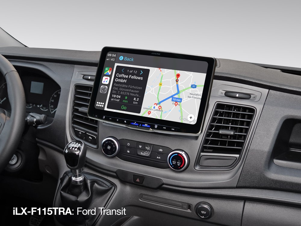 Alpine iLX-F115TRA Halo11 pre Ford Transit Custom (2018 ->) je druhou generáciou svetoznámeho produktového radu Halo od spoločnosti Alpine, ktorý je vybavený 11“ dotykovou obrazovkou s vysokým rozlíšením WXGA a dodáva sa so všetkými potrebnými montážnymi dielmi (ako sú káblové zväzky plug-and-play, rozhranie CAN, rámček atď). Supertenký displej sa zdanlivo jednoducho vznáša nad prístrojovou doskou a možno ho nastaviť rôznymi spôsobmi, aby ste získali čo najlepšiu polohu. S touto úžasnou hlavnou jednotkou si môžete vychutnať bezdrôtovú kompatibilitu s Apple CarPlay a Android Auto (káblovú), digitálne rádio DAB+, prehrávanie videa z USB, prehrávanie Hi-Res Audio, hands-free a streamovanie zvuku cez Bluetooth a mnoho ďalšieho. Vyberte si zo širokej ponuky online navigačných aplikácií, ako napríklad Google Maps, a používajte ich na obrazovke Alpine prostredníctvom Apple CarPlay a Android Auto. Prineste do svojho vozidla výnimočnú kvalitu zvuku: Alpine Halo11 je prvá hlavná jednotka na svete so zabudovaným zosilňovačom triedy D a disponuje širokou škálou profesionálnych funkcií na ladenie zvuku, ako je napríklad 2-pásmový X-over, parametrický ekvalizér, digitálna časová korekcia a mnoho ďalších.Hlavné vlastnosti
