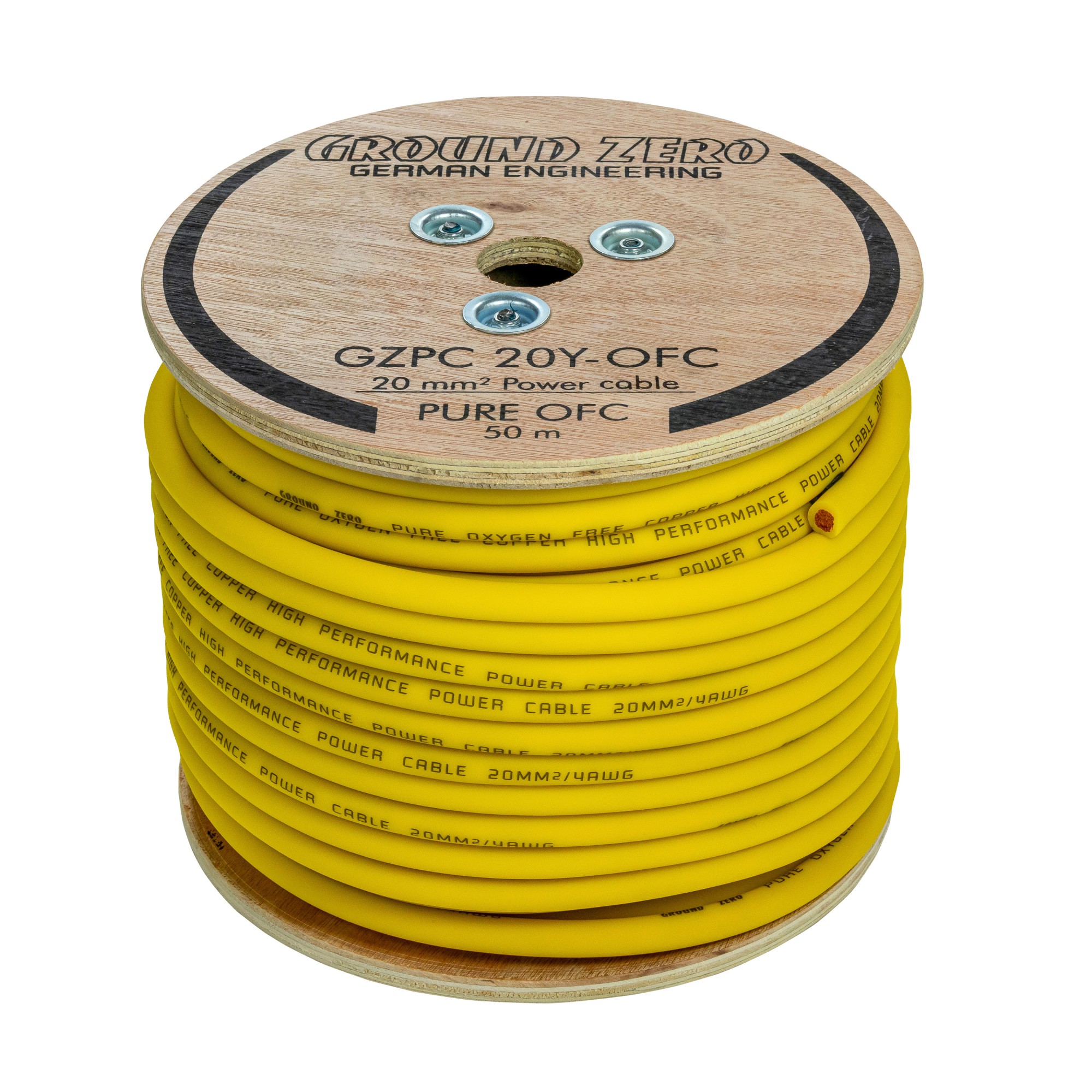 Ground Zero GZPC 20Y-OFC je vysoko kvalitný napájací kábel s prierezom 20 mm², určený pre náročné audioinštalácie. Vodič je vyrobený z čistej bezkyslíkatej medi (OFC – Oxygen Free Copper), ktorá zaručuje minimálne prechodové odpory, vysokú vodivosť a dlhodobú stabilitu aj pri vysokých prúdoch. V porovnaní s lacnejšími CCA káblami poskytuje výrazne nižšie úbytky napätia, lepší prenos výkonu a vyššiu odolnosť voči oxidácii. Vďaka vysoko ohybnej izolácii sa s káblom ľahko pracuje aj v stiesnených priestoroch vozidla. Robustný žltý plášť zabezpečuje mechanickú odolnosť, ochranu proti oderu a dlhú životnosť aj pri profesionálnych inštaláciách. Kábel je navinutý na drevenej cievke a dodávaný po 1 m.