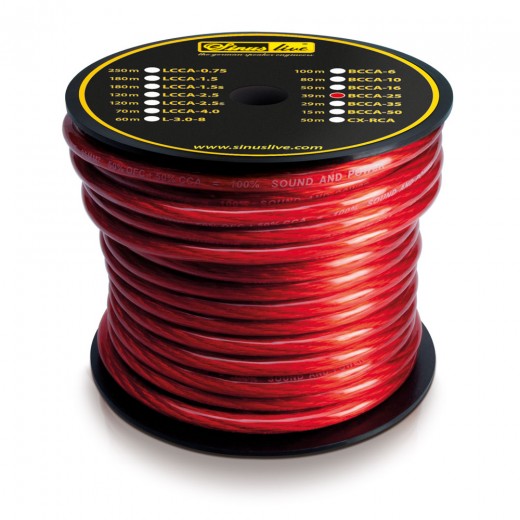 Vysoko flexibilné jemné lanko (0,12 mm) spletené navzájom. Izolácia odolná voči pôsobeniu oleja a benzínu. Napájací kábel je vyrobený z mixu: 50 % medeného kábla bez kyslíka a 50 % vysoko kvalitného kábla CCA s vysokým obsahom medi. Zmes materiálov umožňuje znížiť odpor v porovnaní so štandardným káblom CCA o viac ako 30%.