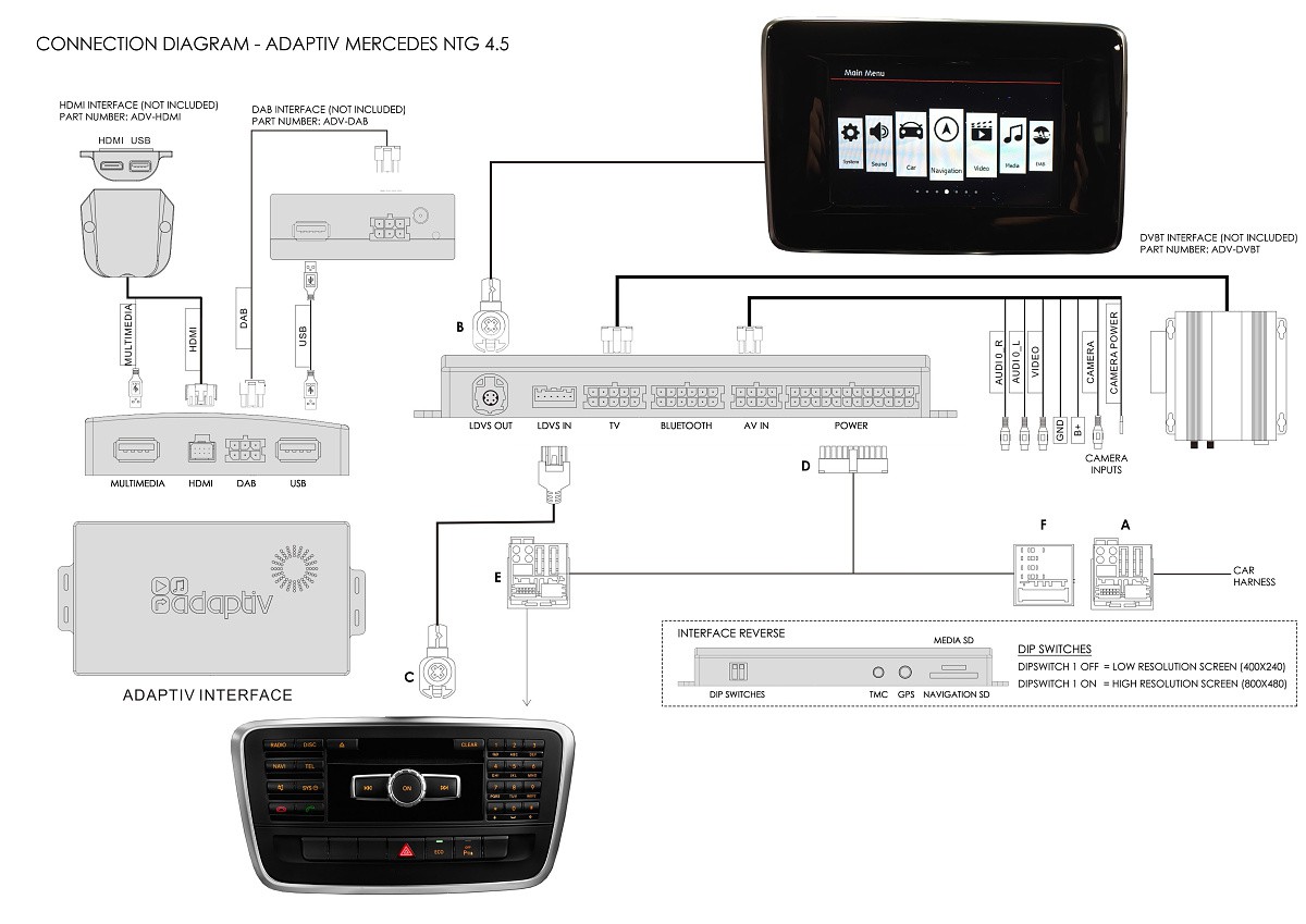 Adaptiv - elektronický modul, ktorý umožňuje rozšírenie existujúcich jednotiek s OEM monitorom o navigáciu, prehrávanie videa, vstup USB, iPhone, SD kartu, HDMI, AUX, pripojenie zadnej parkovacej kamery, DAB rádiového tunera alebo DVB-T televízie. Všetko je ovládané pomocou otočného ovládača.