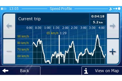 - Informácie o čase príchodu, čase zostávajúcom, vzdialenosti k cieľu a vzdialenosti k ďalšej zmene smeru jazdy.
