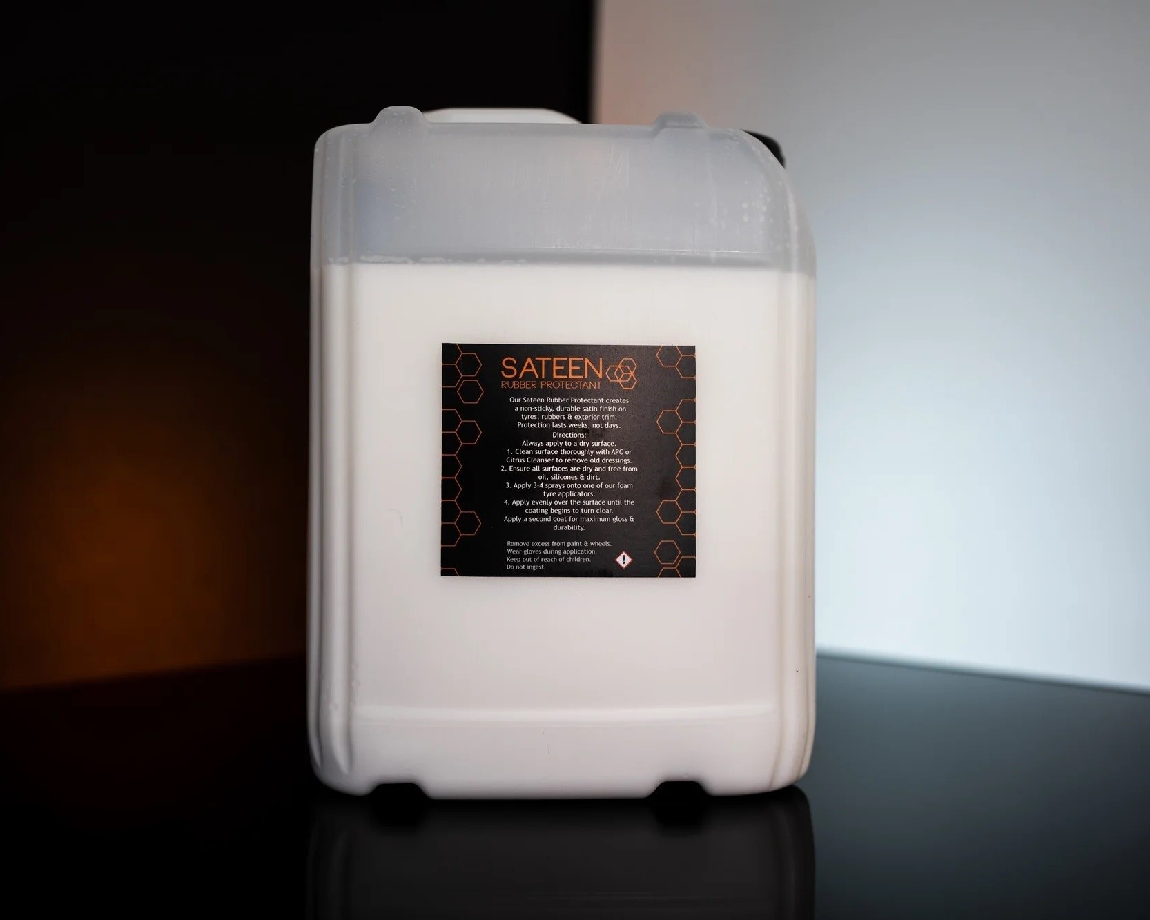 Na rozdiel od iných produktov na trhu vytvára nové revolučné zloženie Sateen 2.0 odolný povlak, ktorý priľne k povrchu pneumatiky a zároveň na ňom stvrdne, aby bol na dotyk suchý v priebehu niekoľkých minút. Sateen 2.0 netrpí následným znečistením karosérie známym ako čierne mastné škvrny za kolesom. Antistatické vlastnosti Sateen 2.0 dokonale odpudzujú prach, špinu a vodu a stávajú sa novou aktívnou vrstvou na povrchu pneumatiky. Sateen 2.0 je na báze vody, čím poskytuje dlhotrvajúci ochranný UV povlak na pneumatikách a gume, ktorý vydrží týždne, nie dni! Po nanesení jednej vrstvy zostáva povrch pneumatiky krásne saténový a stáva sa odolným voči vode, oleju a nečistotám. Ak chcete dosiahnuť dlhotrvajúci mokrý vzhľad a vyššiu úroveň lesku, naneste 2 až 3 vrstvy (s odstupom 15 minút).