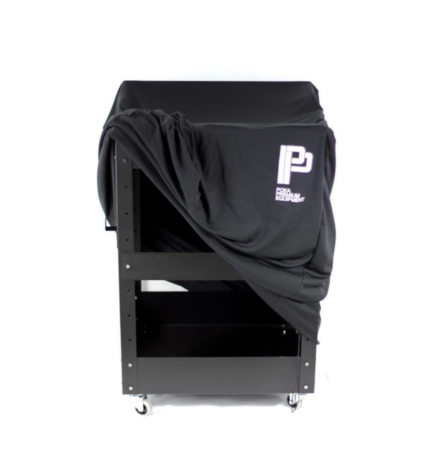 Poka Premium Fabric cover for the Detailing Trolley je textilný ochranný návlek na detailingový vozík Poka Premium Detailing Trolley a Trolley PRO. Tento vysoko kvalitný látkový poťah na vozík Detailing Trolley ľahko pokryje všetky produkty/zariadenia na vozíku a vaše pracovisko nebude vyzerať neupratane, ale naopak čisto. Vďaka všitému nastaviteľnému lemu sa návlek nebude váľať po podlahe. Poťah je vyrobený zo 100% elastického polyesteru, ktorý je možné ľahko prať v práčke.