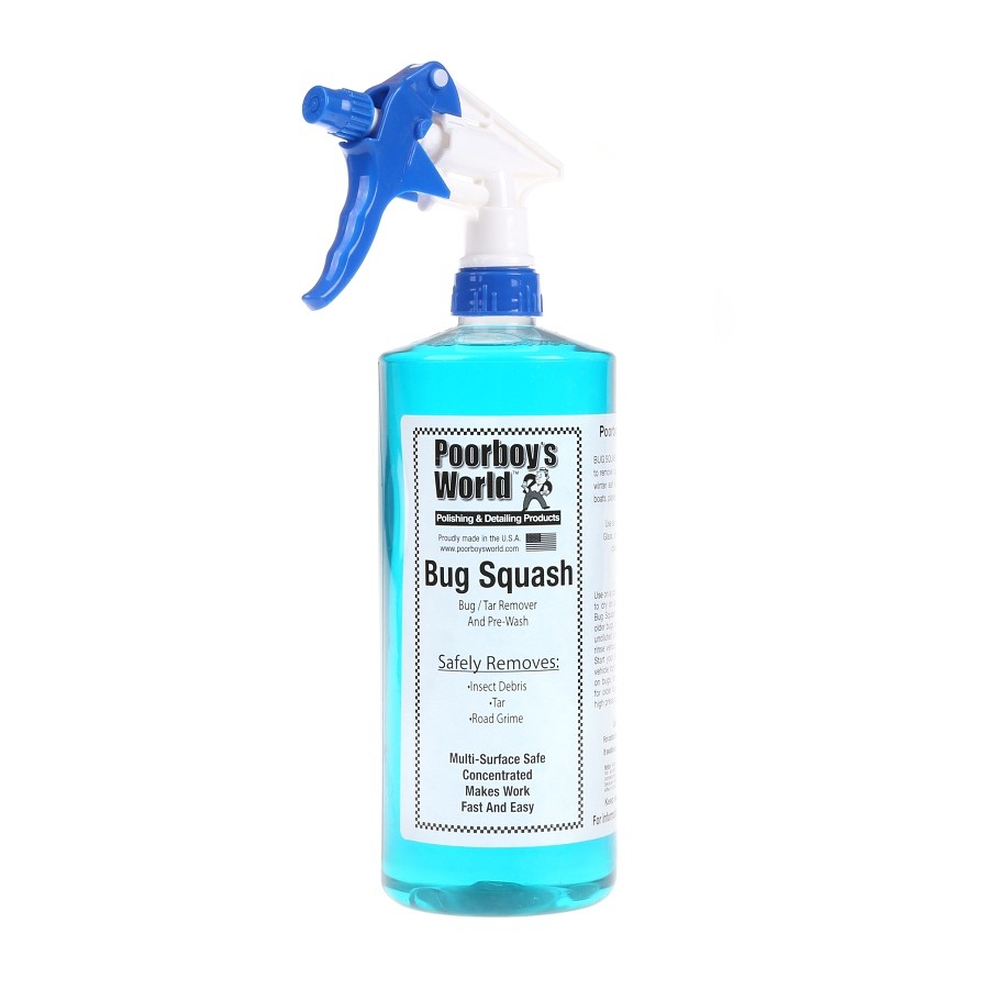 Bug Squash je rýchly a bezpečný na odstránenie mŕtveho hmyzu, asfaltu, nečistôt, cestnej špiny a soli z povrchu vozidla. Hlavnou prednosťou prípravku je (okrem vysokej účinnosti) jeho šetrnosť. Jeho pH neutrálne zloženie je šetrné k laku a všetkým ďalším častiam vozidla, na ktorých je aplikovaný vosk, sealant alebo keramická ochrana laku. Zvyšky mŕtveho hmyzu sú pre lak nebezpečné, preto odporúčame ich rýchle odstránenie. Poorboy's Bug Squash je špeciálne navrhnutý tak, aby rozložil škodlivé proteíny, ktoré hmyz obsahuje a rýchlo ich odstránil z laku auta. Bug Squash je veľmi účinný aj na odstránenie dechtu a možno ho použiť aj ako prípravok na predumytie vozidla alebo odstránenie soli v zimnom období. Môžete ho naliať aj do nádržky do ostrekovačov a vďaka prítomnosti tohto prípravku bude stieranie stieračov efektívnejšie. Je možné ho riediť v pomere 1:3 pre normálne predumytie alebo silnejšie riedenie pre viac znečistené vozidlo. Súčasťou balenia Bug Squash je aj ergonomický rozprašovač.