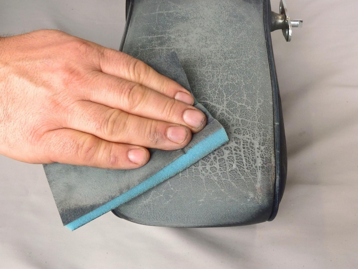 - Namiesto opravy starostlivo odmastite benzínovým čističom Leder Reinigungsbenzin, ktorý zaistí správnu priľnavosť následných prípravkov pre renováciu.