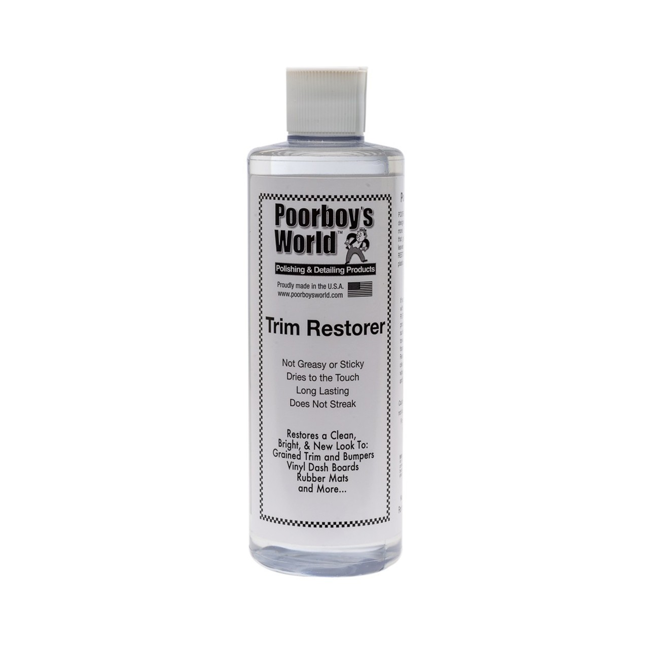 Trim Restorer je jedinečný prípravok, ktorý obnovuje pôvodný vzhľad exteriérových plastov, vinylu, gumy alebo pneumatík. Vďaka patentovanému UV absorbéru chráni materiály pred UV žiarením, vyblednutím, dokáže odpudzovať vodu aj nečistoty a uľahčuje údržbu najmä exteriérových plastov. Špeciálne zloženie prípravku Trim Restorer hlboko preniká do plastu, dokáže obnoviť zašlej čiernej farby a dodá saténový lesk. Má dlhotrvajúci účinok, nezanecháva lepivý povrch a nerobí mapy.