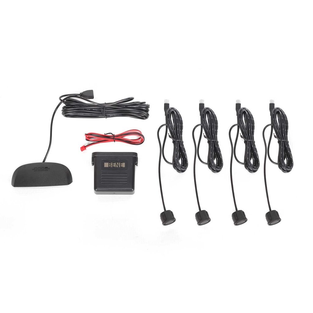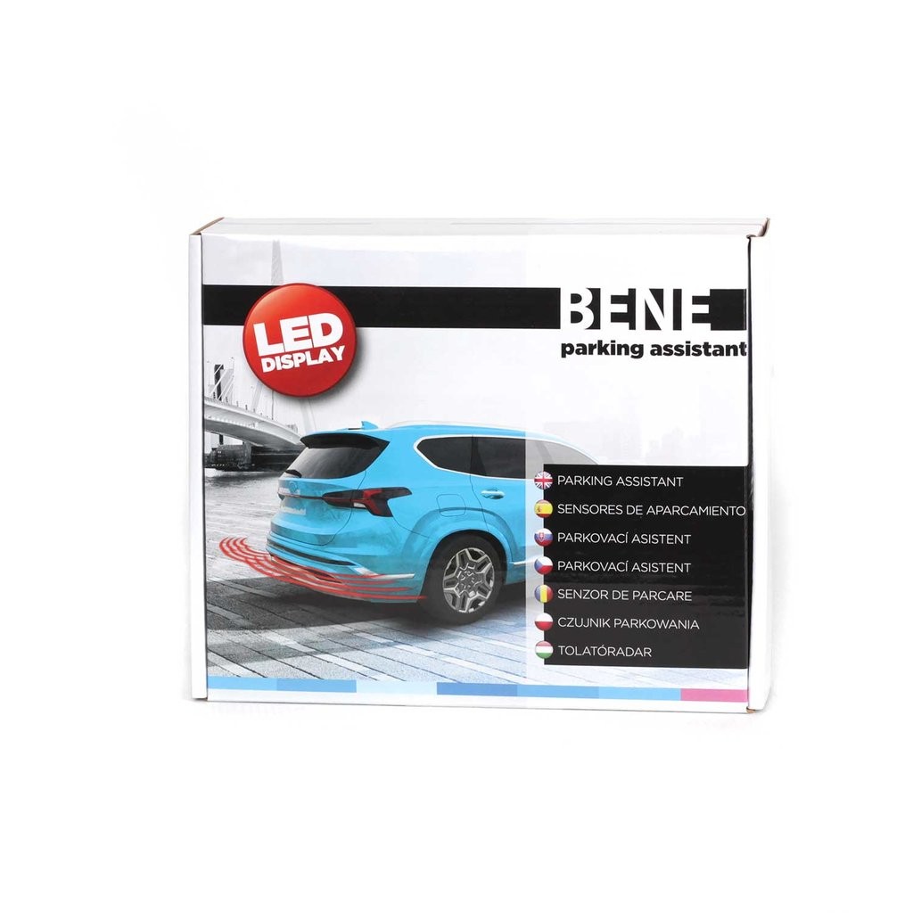 Parkovací asistent BENE 414 so 4 snímačmi s priemerom 20 mm, určený na montáž do zadného nárazníka vozidla. Na prekážku upozorňuje akustickým signálom. Parkovací asistent je vybavený štyrmi ultrazvukovými snímačmi, ktoré sa inštalujú do zadného nárazníka. Pomocou snímačov riadiaca jednotka vyhodnocuje vzdialenosť od prekážky. Snímače sú nainštalované tak, aby vyčnieval len ich vonkajší okraj. BENE 414 akusticky signalizuje prekážku - pípnutím bzučiaka v kabíne vozidla. Akustický signál sa stáva intenzívnejším, keď sa prekážka približuje. Súprava obsahuje presnú frézu na vyvŕtanie potrebných otvorov v plastovom nárazníku.