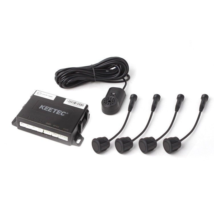 Parkovací asistent Keetec so 4 snímačmi a akustickou signalizáciou je určený na inštaláciu do zadného alebo predného nárazníka vozidla. Systém je doplnený o funkciu Antihook a automatickú identifikáciu chybného senzora, nastavenie citlivosti, učiacu funkciu, bzučiak s nastaviteľnou hlasitosťou. Napájacie napätie 12 V / 24 V. Dĺžka vodičov k senzorom je 2,3 m. V prípade inštalácie parkovacieho asistenta do predného nárazníka je potrebné použiť predlžovacie káble EXT CABLE KIT.