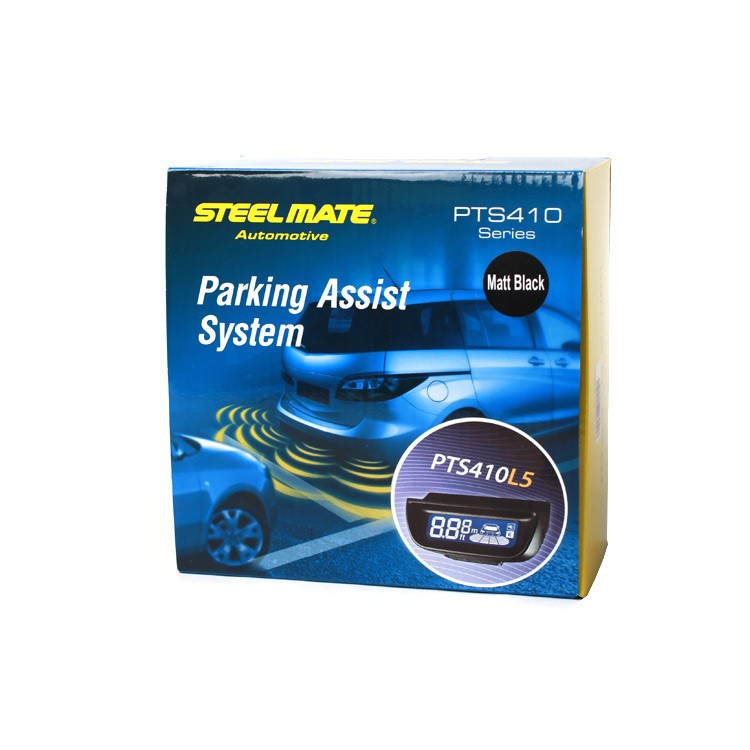 Parkovací asistent STEELMATE so 4 striebornými zápustnými snímačmi 16mm, určený pre inštaláciu do zadného nárazníka vozidla doplnený o grafický LCD displej L5 s číselným ukazovateľom pre komfortné vizuálnu signalizáciu vzdialenosti od prekážky. Displej sa nalepí na čelné sklo pod centrálnou spätné zrkadlo. Riadiaca jednotka umožňuje nastavenie inteligentné učiacej funkcie, citlivosti v dvoch úrovniach a Antihook (posunutie snímania o 20 cm).