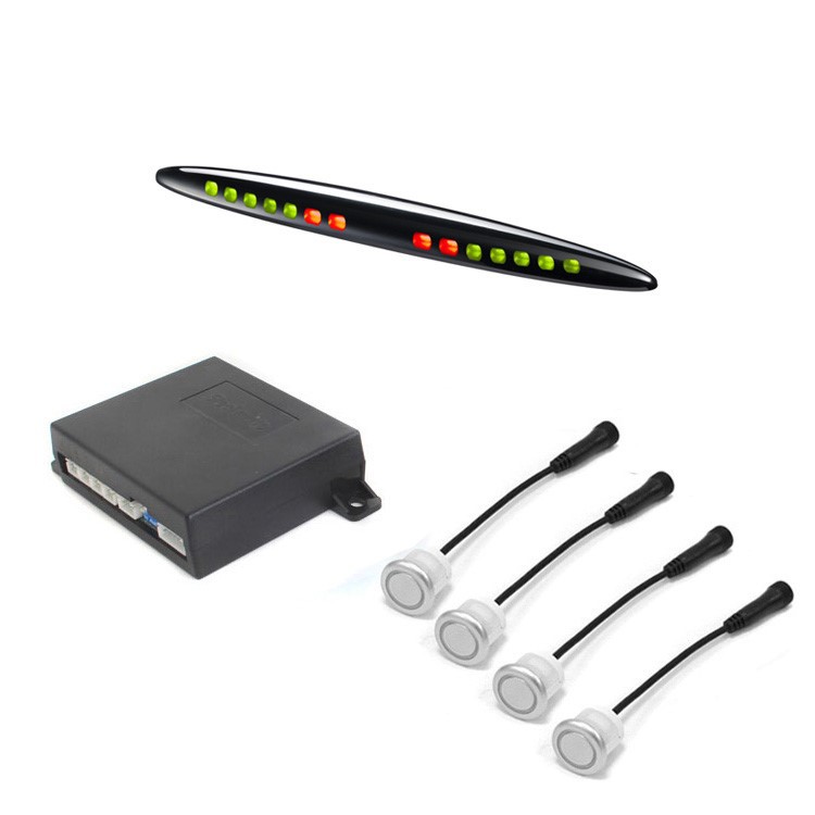 Parkovací asistent STEELMATE so 4 snímačmi strieborné drobné stádo a ultra štíhlym LED displejom M21 s dvojfarebným ukazovateľom určený pre inštaláciu do zadného nárazníka vozidla. Displej je určený pre montáž na palubnú dosku alebo pod spätné zrkadlo, alebo pre stropnú montáž (sledovanie pomocou odrazu v spätnom zrkadle). Systém obsahuje funkciu Antihook (ignorácia ťažného zariadenia vozidla), automatickú identifikáciu chybného snímača a je doplnený o nové funkcie nastavenia citlivosti, učiaci funkciu. Sada obsahuje 4ks parkovacích snímačov, riadiacu jednotku, displej, bzučiak a kabeláž. Napájacie napätie 12V.