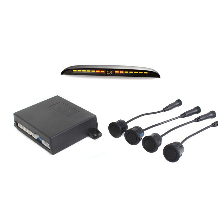 Parkovací asistent STEELMATE so 4 snímačmi a LED displejom M8 s číselným dvojfarebným ukazovateľom určený pre inštaláciu do zadného nárazníka vozidla. Displej je určený pre montáž na palubnú dosku alebo spätné zrkadlo alebo pre stropnú montáž (sledovanie pomocou odrazu v spätnom zrkadle. Číslice na displeji sú zobrazované zrkadlovo, obrátene po nastavení). Systém obsahuje funkciu Antihook (ignorácia ťažného zariadenia vozidla), automatickú identifikáciu chybného snímača a je doplnený o nové funkcie nastavenia citlivosti a učiaci funkciu. Sada obsahuje 4ks parkovacích snímačov, riadiacu jednotku, displej a kabeláž. Napájacie napätie 12V.