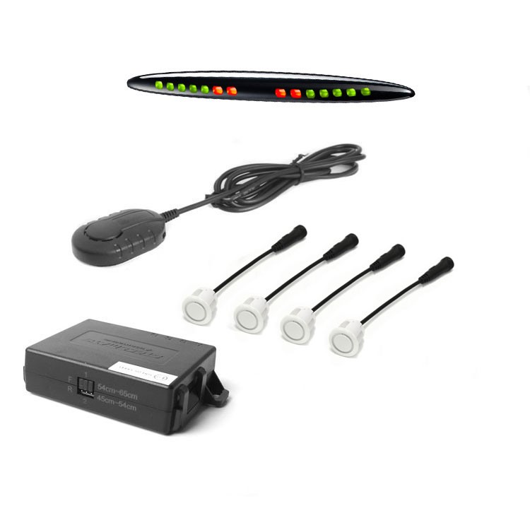 Parkovací asistent so 4 bielymi senzormi a ultratenkým displejom M21 LED s dvojfarebným zobrazením na inštaláciu do zadného alebo predného nárazníka