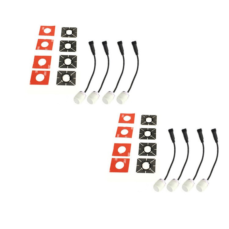 Predné a zadné parkovacie systémy Parkovací asistent STEELMATE s 8 zápustnými senzormi bielej farby 16 mm, len s jednou riadiacou jednotkou, pre inštaláciu do predného a zadného nárazníka vozidla, doplnený o LCD displej V7, s číselným ukazovateľom a grafickú signalizáciou, umiestnenie displeja na čelné sklo. Riadiaca jednotka umožňuje nastavenie inteligentné učiacej funkcie, citlivosti v dvoch úrovniach a posunutie snímania o 20 cm.