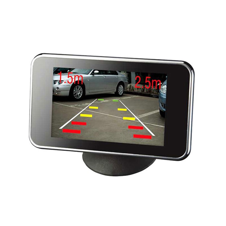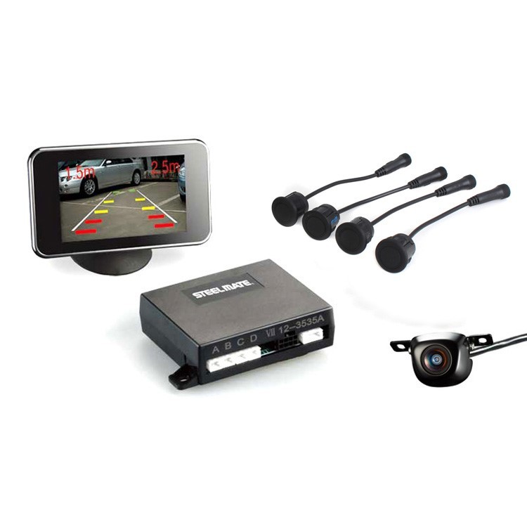 Parkovací asistent STEELMATE so 4 snímačmi, parkovacou kamerou a 3.5 "TFT displejom. Farebná kamera pre povrchovú montáž s uhlom pohľadu 100 ° určená pre inštaláciu do zadnej časti vozidla. Monitor zobrazuje obraz z kamery spolu s vodiacimi pruhmi, vzdialenosť od prekážky a aj smer v ktorom sa prekážka nachádza. Parkovací asistent upozorňuje na prekážku aj zvukovou signalizáciou. Displej umožňuje prispôsobovať obraz vonkajším svetelným podmienkam - nastavovať jas a kontrast. Počas jazdy sa na monitore zobrazuje čas.Parkovací asistent sa automaticky aktivuje zaradením spiatočky na vozidle.