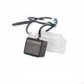 OEM farebná parkovacia kamera pre inštaláciu do lampy pre osvetlenie zadnej registračnej značky. Súčasťou kamery je LED svetlo nahradzujúce pôvodné osvetlenie.