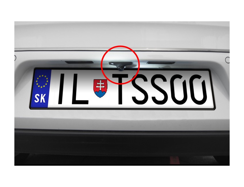Parkovacia kamera univerzálna s plochým dizajnom, možnosť zapnutia/vypnutia vodiacich čiar a zrkadlového obrazu, uhol záberu 130°, osadenie na rovnú plochu pomocou 3M pásky.