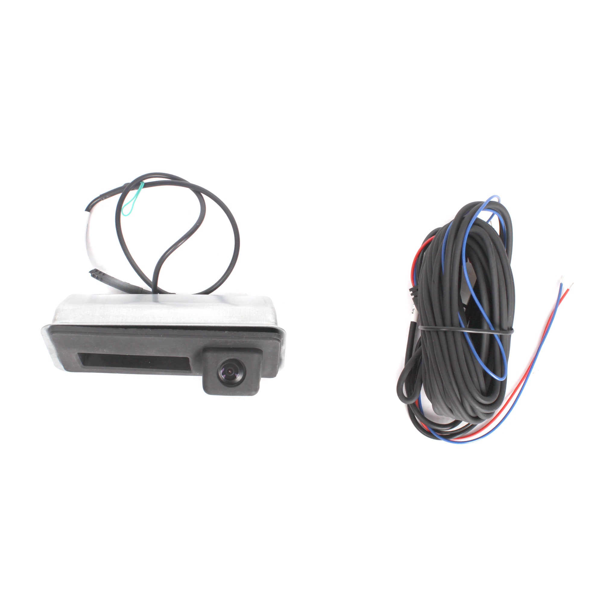OEM parkovacia kamera pre Audi, Škoda, VW (15->) pre inštaláciu na miesto madla otváranie piatych dverí. Kamera obsahuje spínač a konektor pre pripojenie OEM kabeláže otvárania dverí.
