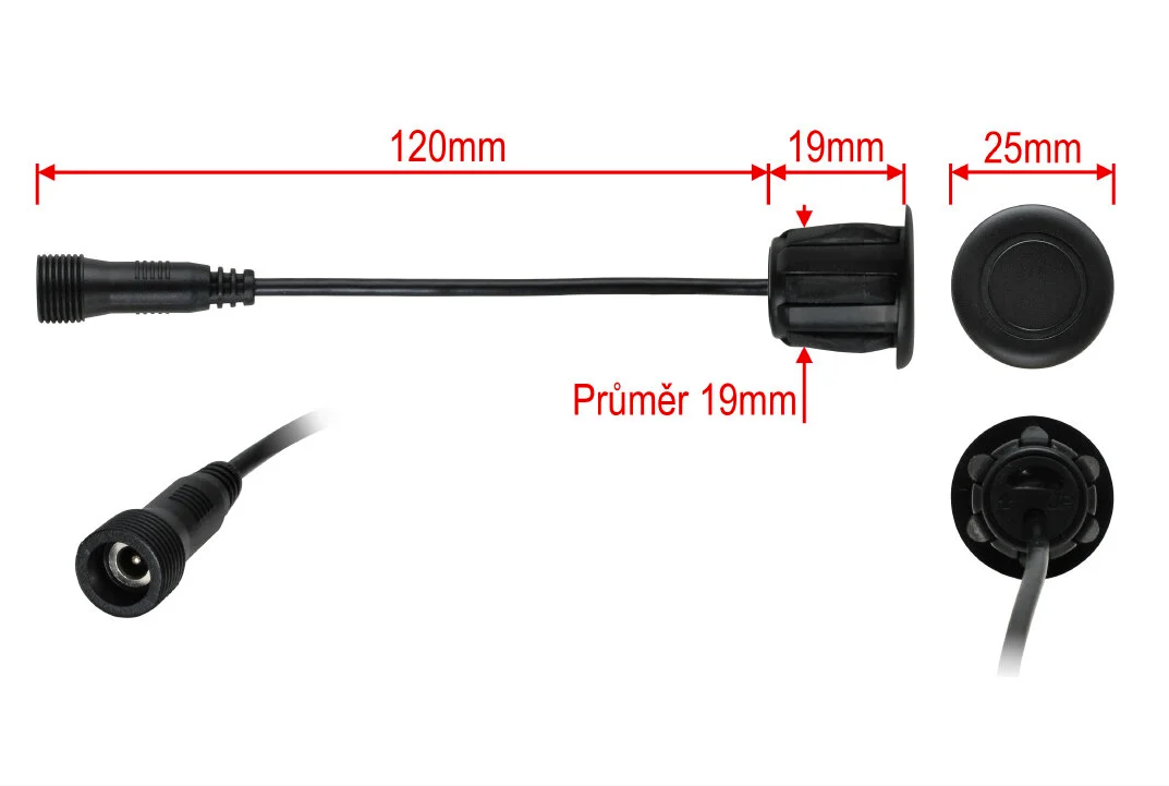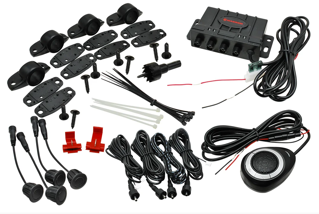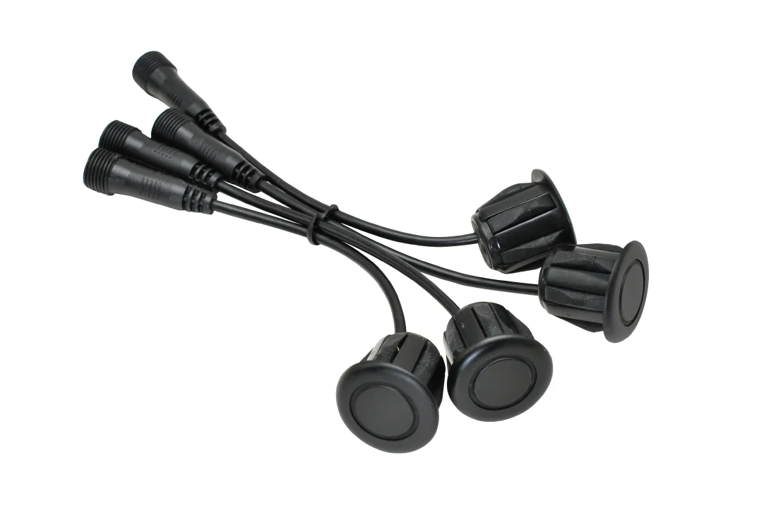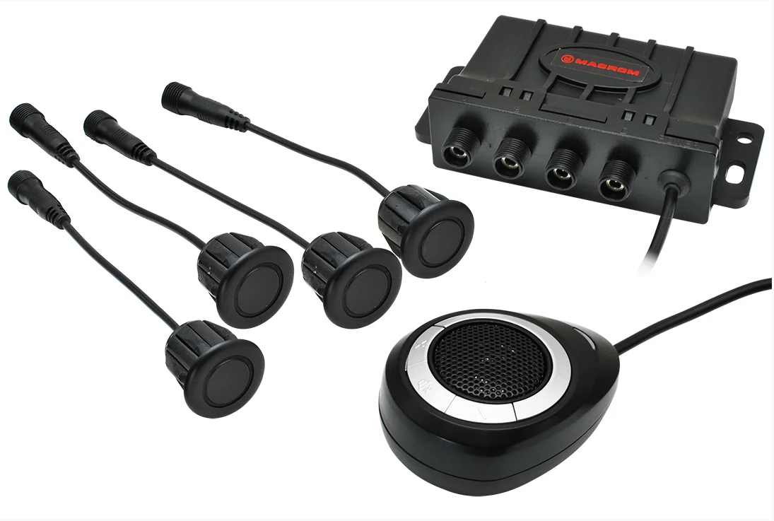 Profesionálna sada zadných parkovacích senzorov s bezdrôtovým bzučiakom je ideálnym riešením pre automobily s kovovým nárazníkom, dodávkové i nákladné vozidlá. Štyri ultrazvukové snímače o priemere 19 mm sa inštalujú z vonkajšej strany nárazníka a poskytujú presnú detekciu prekážok za vozidlom. Digitálne spracovanie signálu v riadiacej jednotke, eliminácia falošných poplachov a možnosť nastavenia hlasitosti i tónu bzučiaka zabezpečujú spoľahlivú a komfortnú funkciu systému. Senzory majú vodotesné prevedenie a čierny matný povrch, ktorý je možné lakovať do farby vozidla.