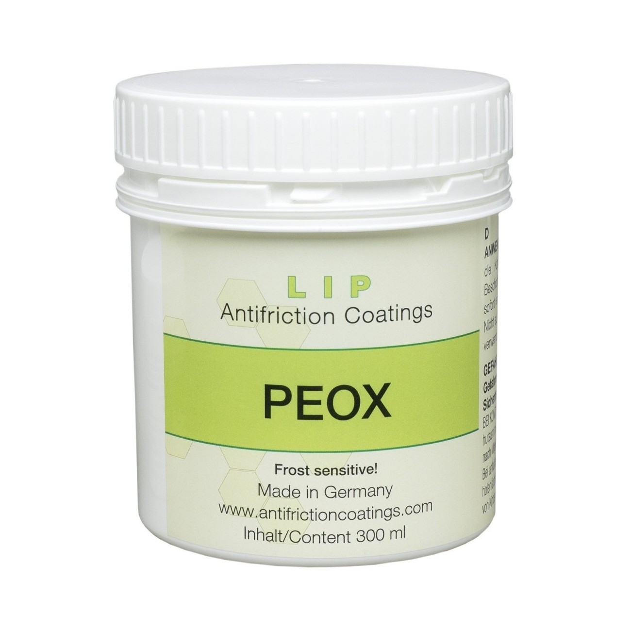 Peox zabraňuje vzniku nepríjemných zvukov a znižuje opotrebenie spôsobené trením. Peox je pasta na báze vody, ktorá po vysušení vytvorí transparentný odolný ochranný film. Používa sa na neviditeľných miestach, aby sa zabránilo vzniku nepríjemného zvuku a znížilo sa trenie. Výrobok by mal byť aplikovaný pomocou kúsku látky v tenkej vrstve na plochy, ktoré sú spolu v kontakte. Pre viditeľné oblasti alebo na povrchy náchylné k hrdzaveniu použite Leisol tichý krém.- Oblasti použitia: vodiace lišty odolné proti korózii, vodítka páky, závesy, spínače, závity.