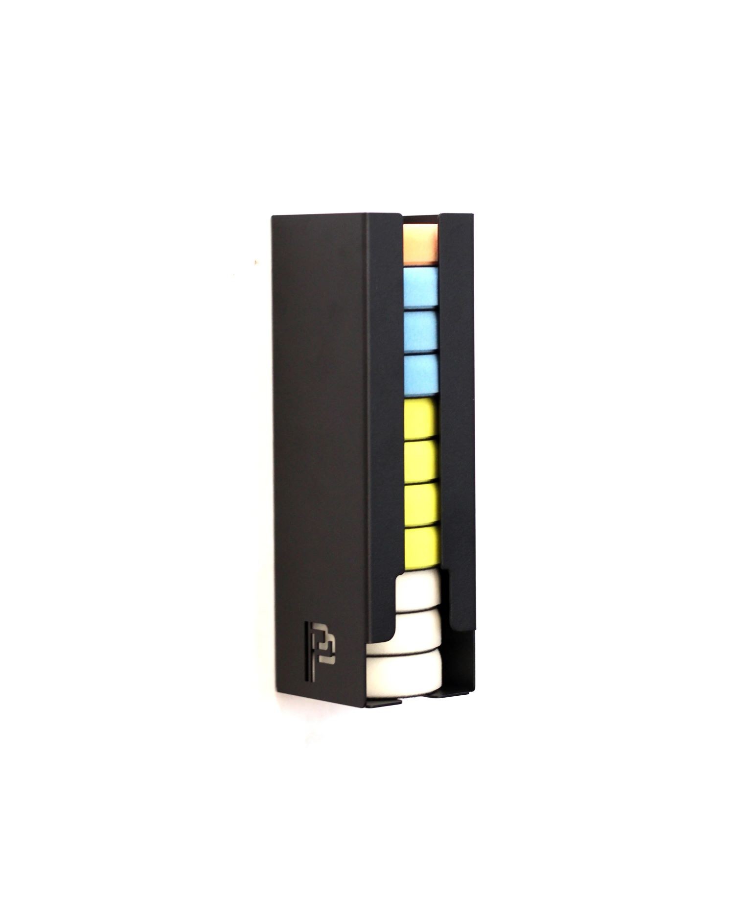 Praktický a funkčný podávač na ukladanie leštiacich kotúčov. Špeciálne navrhnuté dno podávača umožňuje pohodlné vyberanie kotúčov. Vnútorný priemer 8,5 cm pojme bez problémov kotúče až s priemerom 83 mm. Podávač pojme maximálne 15 leštiacich kotúčov. Montážne otvory na priskrutkovanie na stenu sú umiestnené v hornej a spodnej časti podávača, vďaka tomu zaručujú úplnú stabilitu. Držiak je vyrobený z kvalitného kovu, ktorý je upravený práškovou farbou, ktorá chráni proti oxidácii.