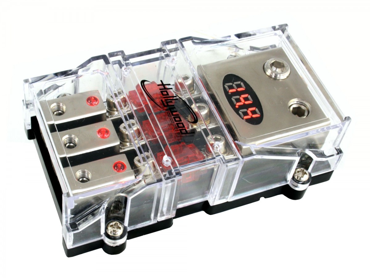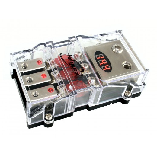 - Poistkový distribučný blok pre 3 x MINI ANL s voltmetrom.