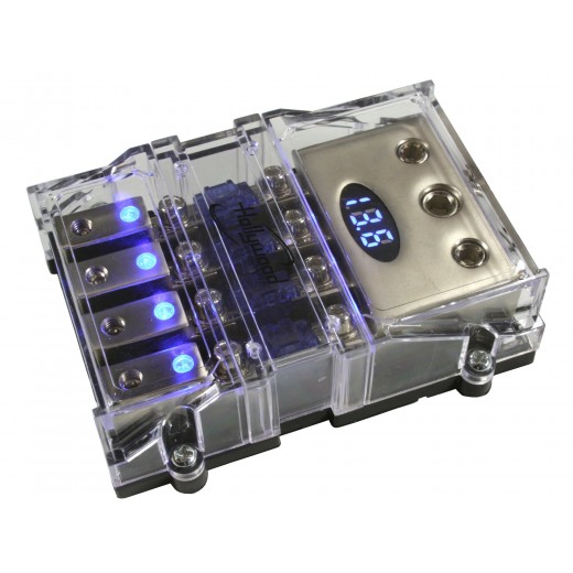 poistkový blok pre 4 x MINI ANL poistky s voltmetrom