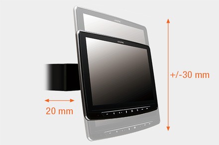 - Nastaviteľná výška a vzdialenosť displeja - výšku displeja je možné nastaviť +/- 3 cm od stredovej polohy. To umožňuje plne stojace alebo zavesené konfigurácie displeja, rovnako ako všetko medzi tým. Môžete tiež nastaviť vzdialenosť displeja od prístrojovej dosky v rozsahu 20 mm. Po zvolení výšky displeja a vzdialenosti k prístrojovej doske sa všetko uzamkne na mieste.