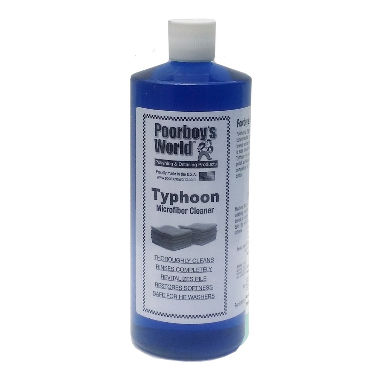 Poorboy's World Typhoon je vysoko koncentrovaný čistiaci prostriedok, ktorý dokáže dôkladne vyčistiť všetky uteráky z mikrovlákna, utierky z mikrovlákna a aplikátory z mikrovlákna. Je to čistiaci prostriedok s nízkou penivosťou, ktorý je bezpečný pre všetky práčky HE (s vysokým výkonom). Typhoon je obzvlášť účinný pri odstraňovaní zvyškov vosku, lesku a tmelov z vlákien, dôkladne ich vyperie, aby boli uteráky mäkšie, účinnejšie a predĺžila sa ich životnosť.