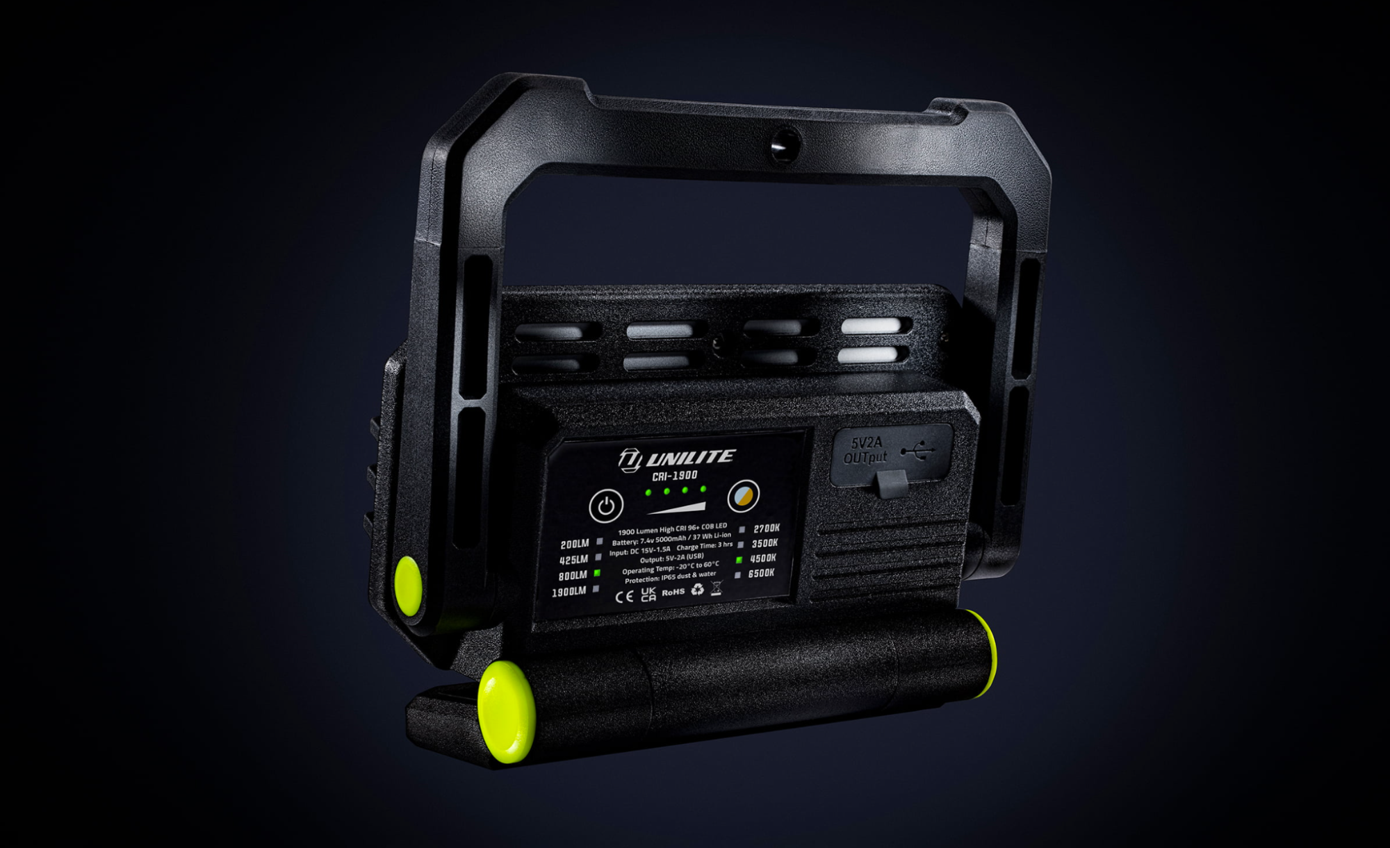 Unilite CRI-1900 je vysoko výkonné CRI svetlo, ktoré má schopnosť byť napájané zo siete, alebo používať vstavanú dobíjaciu batériu, + ponúka 2 A power banku pre dobíjanie iných zariadení. Má výkon 1900 lúmenov z 15,6 W COB LED diódy pri maximálnom nastavení a má štyri výstupné úrovne eco, nízku, strednú a vysokú, z ktorých si môžete vybrať, a tiež výber zo štyroch farebných teplôt 2700 K, 3500 K, 4500 K a 6500 K. Index farebného podania (CRI) je meranie schopnosti svetelných zdrojov verne odhaliť skutočnú farbu objektu v porovnaní s prirodzeným zdrojom svetla, ako je slnečné svetlo, a meria sa medzi 0-100. CRI-1900 má vysokú hodnotu CRI 96+, čo znamená, že kvalita svetelného zdroja je extrémne dobrá a zobrazuje farby v ich skutočnej podobe. Pomáha tiež znižovať namáhanie očí, ktoré môže nižšie svetlo CRI spôsobiť.