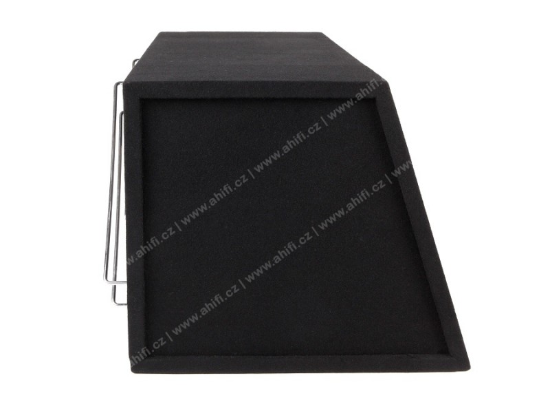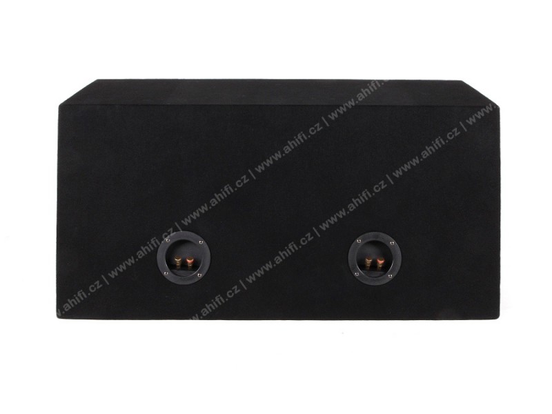 - Ozvučnica je potiahnutá čiernym kobercom, osadená 2 štrbinami a terminálom pre pripojenie.