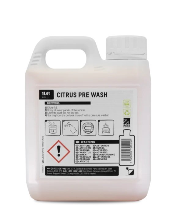 Citrus Pre Wash je produkt, ktorý sa používa pred samotným umývaním automobilu autošampónom. Odstraňuje silné nečistoty, ako sú napr. zaschnuté zvyšky hmyzu a bežnú špinu z vozovky, ideálne si tak pripravíte vozidlo na umývanie. Najbežnejšou metódou je nanášanie pomocou spreja na spodnú časť vozidla, prednú časť a do podbehov, kde je vozidlo najviac znečistené. Tento produkt je navrhnutý tak, aby minimalizoval narušenie voskov a sealantov, ktoré môžu na karosérii byť aplikované. Citrusové oleje umožňujú skvelé prenikanie do špiny a umožňuje tým ľahké spláchnutie, čo z neho robí výnimočne účinný čistič na predumytie. Určite oceníte aj jeho veľmi príjemnú vôňu.