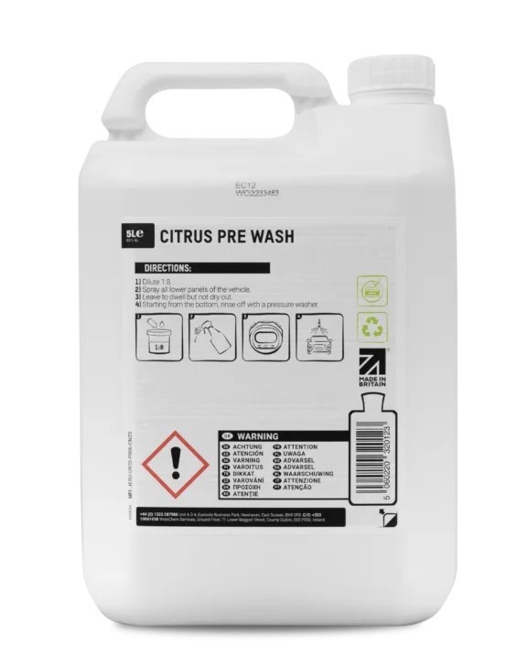 Citrus Pre Wash je produkt, ktorý sa používa pred samotným umývaním automobilu autošampónom. Odstraňuje silné nečistoty, ako sú napr. zaschnuté zvyšky hmyzu a bežnú špinu z vozovky, ideálne si tak pripravíte vozidlo na umývanie. Najbežnejšou metódou je nanášanie pomocou spreja na spodnú časť vozidla, prednú časť a do podbehov, kde je vozidlo najviac znečistené. Tento produkt je navrhnutý tak, aby minimalizoval narušenie voskov a sealantov, ktoré môžu na karosérii byť aplikované. Citrusové oleje umožňujú skvelé prenikanie do špiny a umožňuje tým ľahké spláchnutie, čo z neho robí výnimočne účinný čistič na predumytie. Určite oceníte aj jeho veľmi príjemnú vôňu.